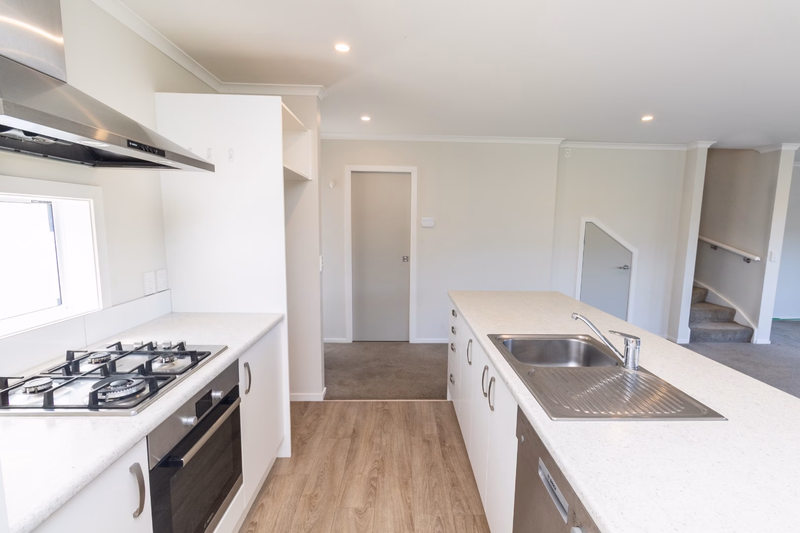 Downstairs features an open-plan kitchen, dining, and living area that flows easily for everyday living, along with a separate guest toilet, perfect for visitors. The kitchen is modern and practical with good bench space and storage.