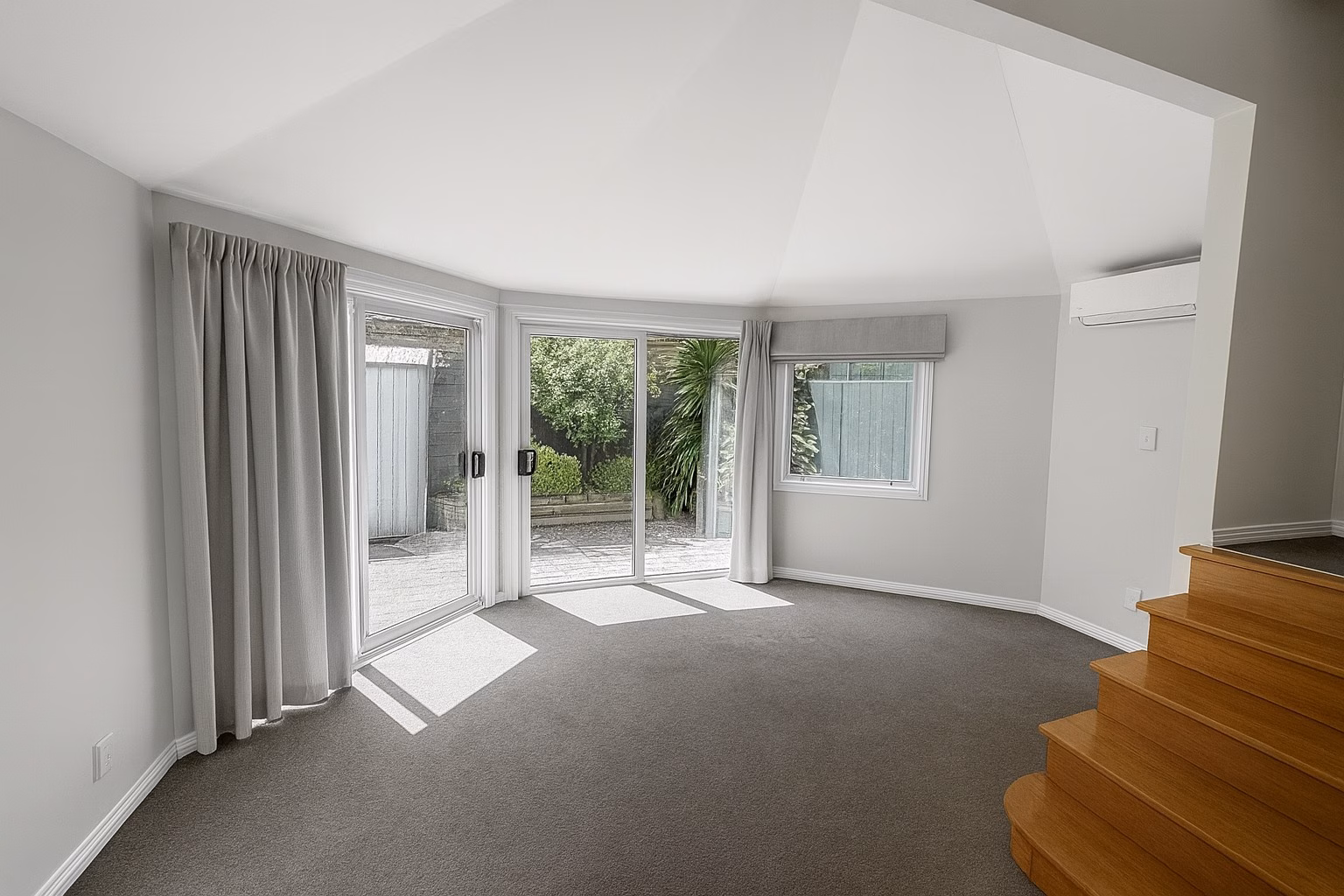 Cathedral ceilings enhance the sense of space and character.