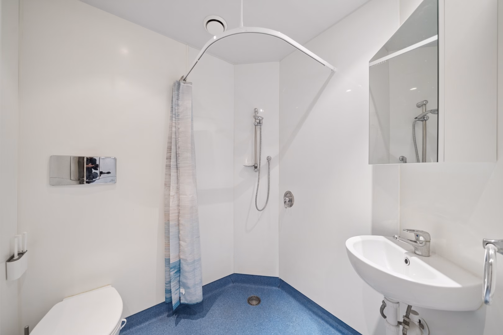 The bedroom is generously sized and features excellent storage, making it both practical and comfortable.