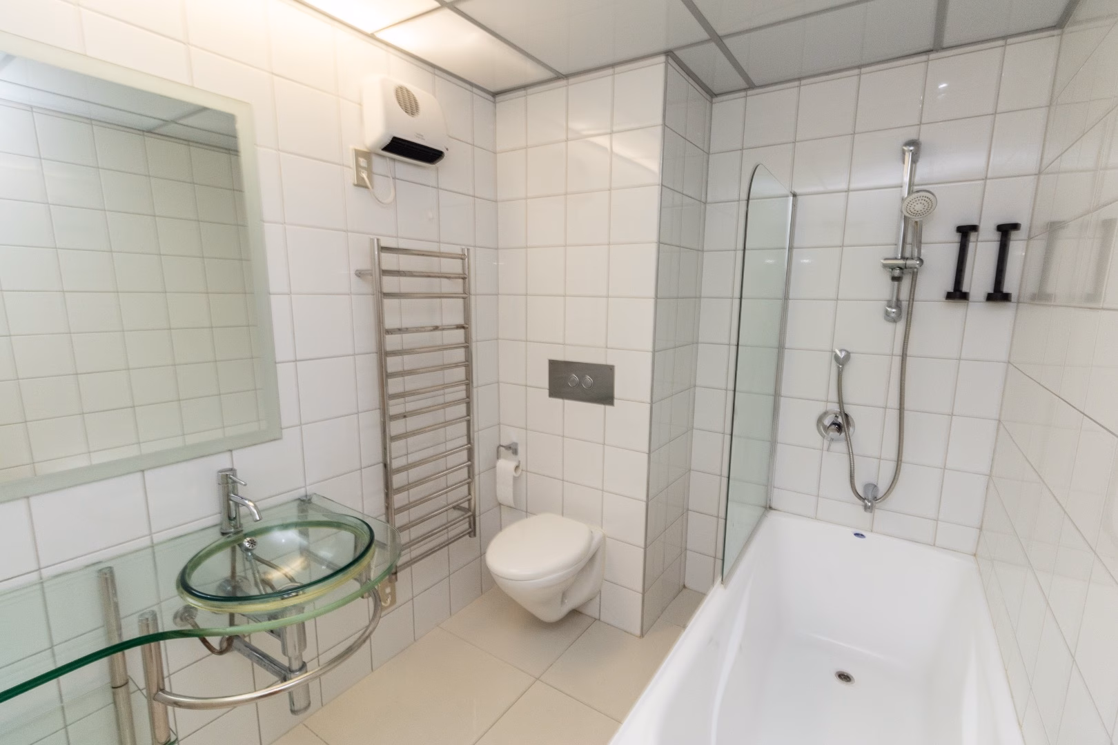 Bathroom with shower over bath.