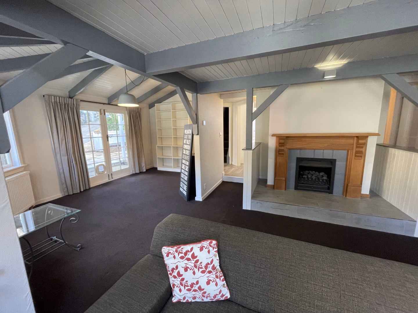 The dining area is fitted bookcase & shelves which opens through French doors to the brick courtyard, a great place to gather in the warmer months. In the lounge is a large leather lounge suite, fireplace & beautiful stained glass window. Upstairs on the mezzanine floor is a second lounge with lounge suite, TV and fibre internet has been installed.