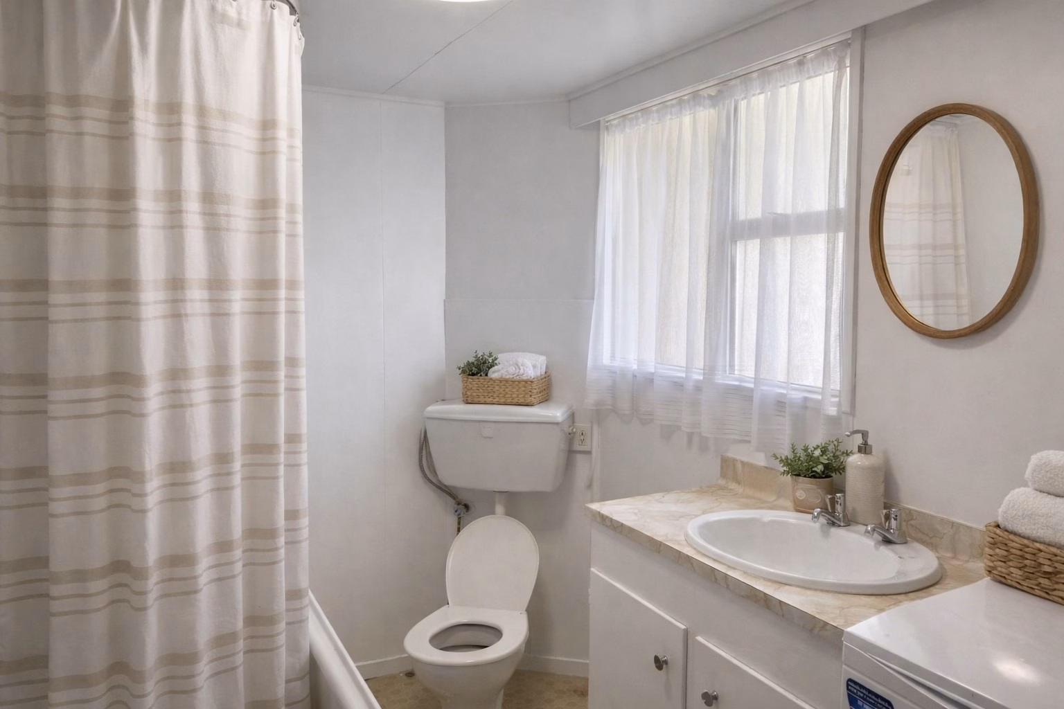 The bathroom and laundry are combined and comes with a washing machine.