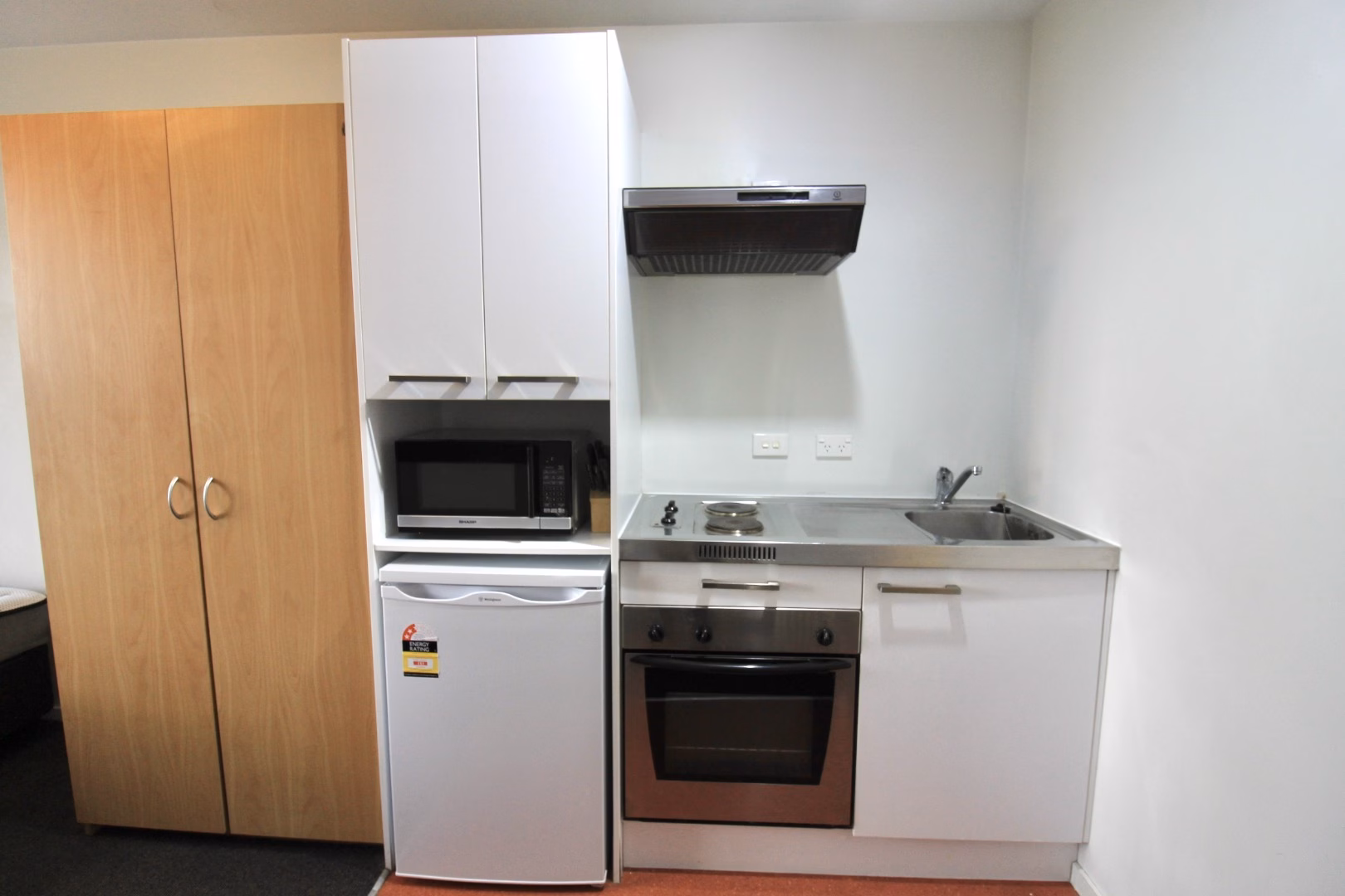 Apartments are fully self-contained with oven, two burner hob, microwave, television, bed, study desk, and all relevant accessories.